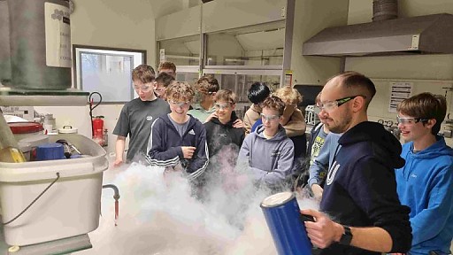 Im Februar 2026 besuchte die Klasse 9b im Chemieunterricht zusammen mit Frau Vogel das Zentrum für Neue Materialien und Prozesstechnik in der nahe gelegenen Uferstadt. Dabei kamen die Schülerinnen und Schüler mit der aktuellen Forschung über Kohlenstoffallotrope in Berührung, mit welchen sie sich zuvor im Unterricht auseinander gesetzt hatten. Beim Rundgang durch das Institut konnte die Klasse Einblicke in die Arbeitswelt der Chemie erlangen, echte Labore und Arbeitsweisen kennenlernen und vielseitige Fragen zu chemischen Berufen stellen. So konnte die Chemie greifbarer und das Interesse und Neugierde am sonst abstrakten Fach gestärkt werden.