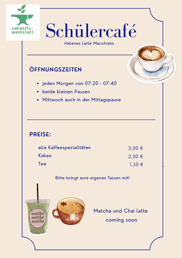 Ab dem Schuljahr 2024/25 haben die Schülerinnen und Schüler der Zukunftswerkstatt die Aktivitäten unter dem neuen Namen "Helenes Latte Macchiato" übernommen.
